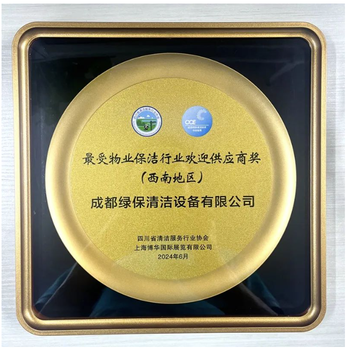 同時,成都綠保清潔設備有限公司也很榮幸獲得了《最受物業保潔行業歡迎供應商獎(西南地區)》獎項,我們將繼續秉承“技術引領,匠心鑄就”的理念,與四川省財貿輕化紡工會、四川省清潔服務行業協會一道,為清潔行業的持續發展和人才培養貢獻力量。我們期待與更多的行業同仁攜手合作,共同開創清潔行業的美好未來。