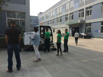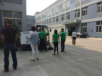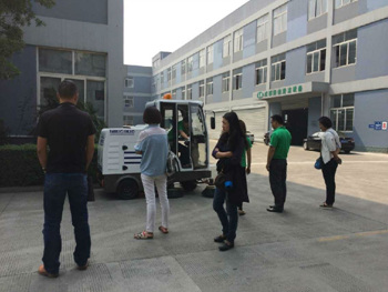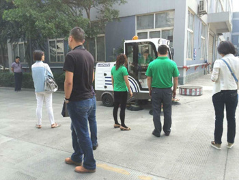 2015年5月27日,四川師范大學一行領導前來我公司考察掃地機、洗地機系列產品,我公司產品充分得到客戶的認同及好評。圖為我公司銷售部和技術部人員為客戶講解及演示設備!
