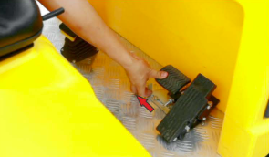 7.清掃完畢后,將邊刷、噴霧降塵、主刷、燈光等開關(guān)撥至“關(guān)”位,拔掉鑰匙開關(guān),按下剎車踏板和駐車剎車踏板,鎖定駕駛式掃地車;