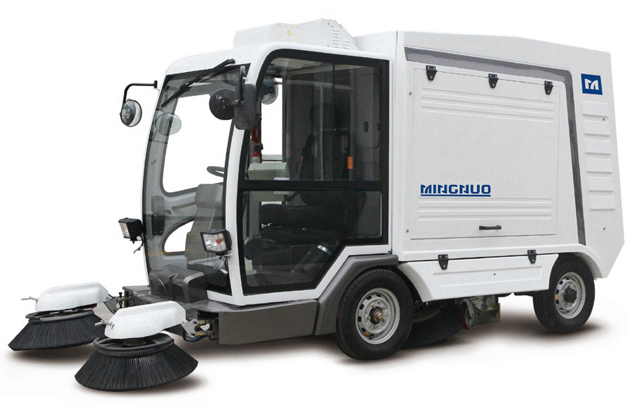 手推式掃路車:手推式掃路車是一種小型掃路車。清掃作業時操作人員在掃路車后面用手推動掃路車前進。這種掃路車清掃寬度一般在800–1200mm之間,且大多在lOOOmm以下,平均清掃速度一般為3 km/h,較高清掃速度一般為Skm/h。由于手推式掃路車操作時,操作人員有一定的勞動強度,所以它僅適用于路面平整區域的清掃,如室內、廣場等。