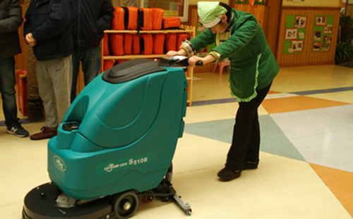手推式洗地機S510B工作效率高,每小時清洗2000平方米,相當于3-4名工人清洗效率;工作時間長,充一次電可連續使用4-5小時,連續清洗8000多平方米,使用成本極低,每天只需3元電費,易損件便宜。每年更換3次。一臺電動洗地機,至少可代替3名清潔工人,較多半年收回成本。