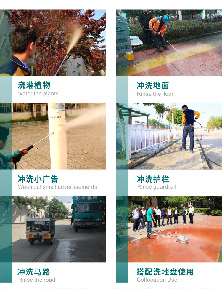 高壓沖洗車和普通的灑水車不同,高壓沖洗車主要是清潔作用。我們的三輪高壓沖洗車可用作臺階、欄桿、垃圾桶等對象的清潔,也可用于行道樹的清洗和地面降塵,其高壓水可沖洗20米左右的樹木,不但可用于市政,還可以用于園林,小區,學校等地方,適用場景較多,價格相對便宜。