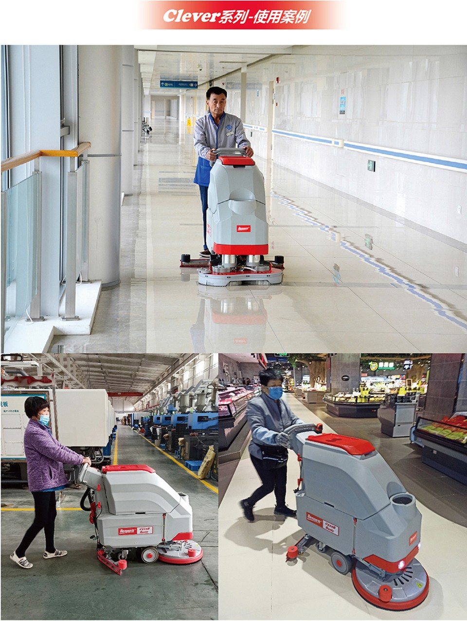 Clever系列手推式洗地機,代表性的一個經典系列,具有高效靈活、操作方便等多種特點和優勢。
