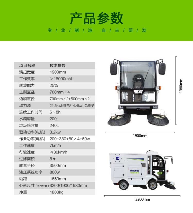 • 四輪掃路車MN-S1800配備240L標準垃圾桶1
