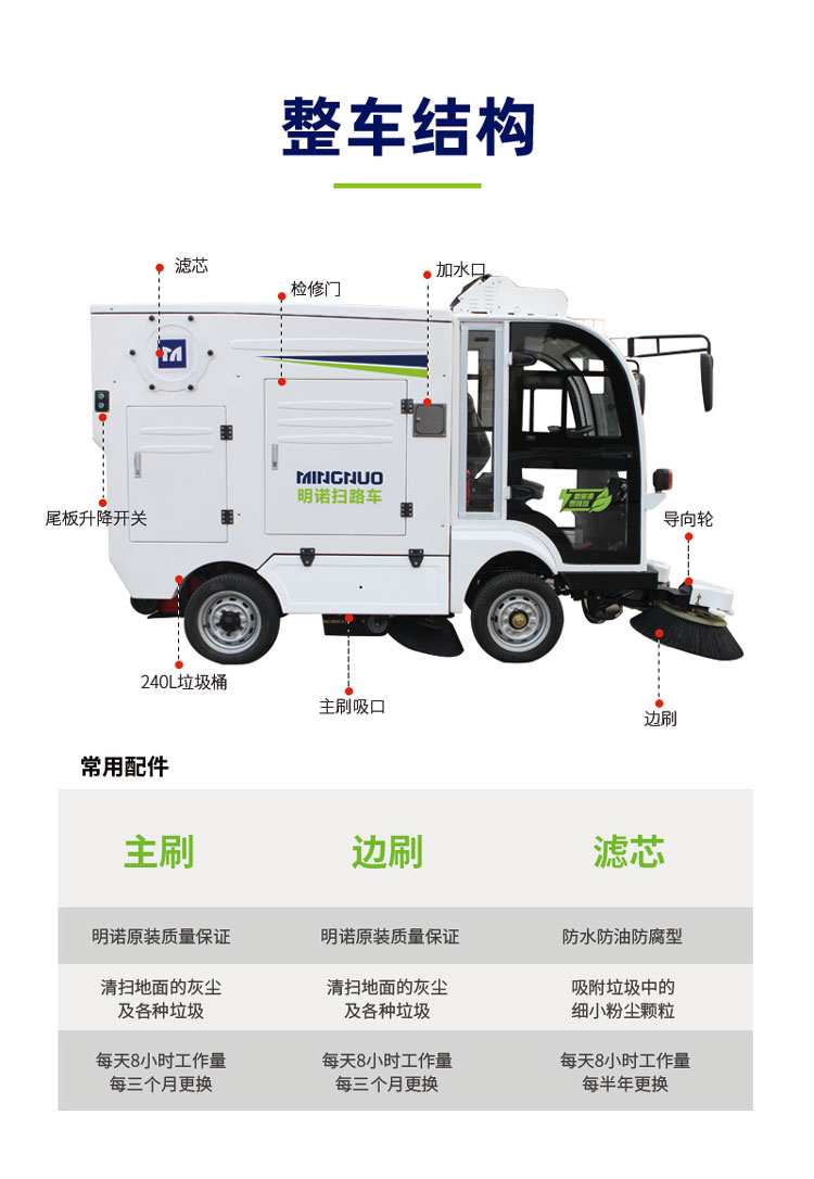 • 四輪掃路車MN-S1800配備240L標準垃圾桶0